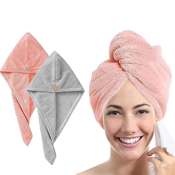 Hair Towel Wrap for Women-Quick Drying Microfiber Towel for Hair with Elastic Loop for Tying-Super Absorbent Head Towels Wrap for Ladies pack of 2